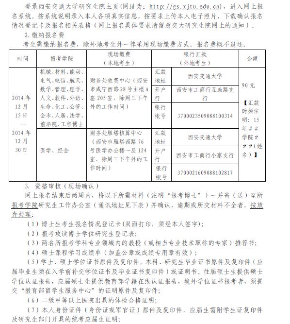 新东方在线将第一时间发布各招生单位2015年博士研究生招生简章、研究生专业目录、参考书目、及导师联系方式,请考博考生密切关注。以下是西安交通大学2015年博士研究生招生简章