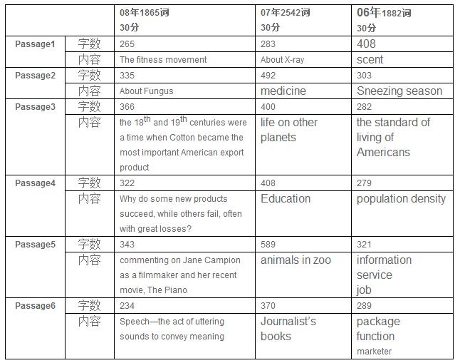 主要测试考生在规定时间内通过阅读获取相关信息的能力。阅读总量为1500-2500词。