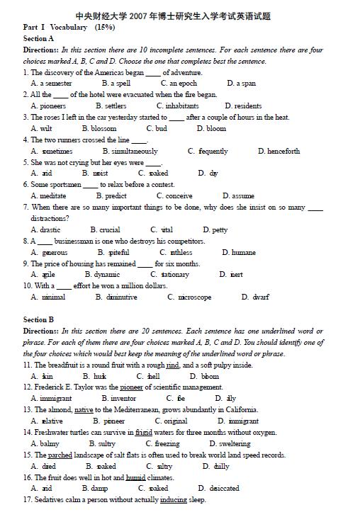 2007年中央财经大学考博英语真题