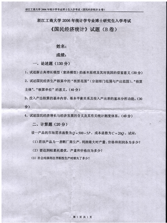浙江工商大学2006年考博真题统计学专业:国民经济统计