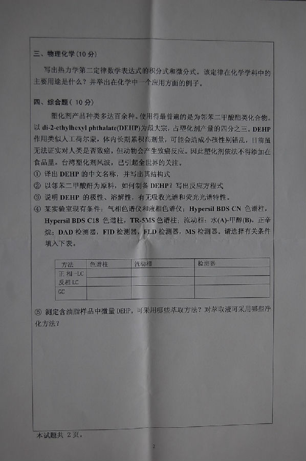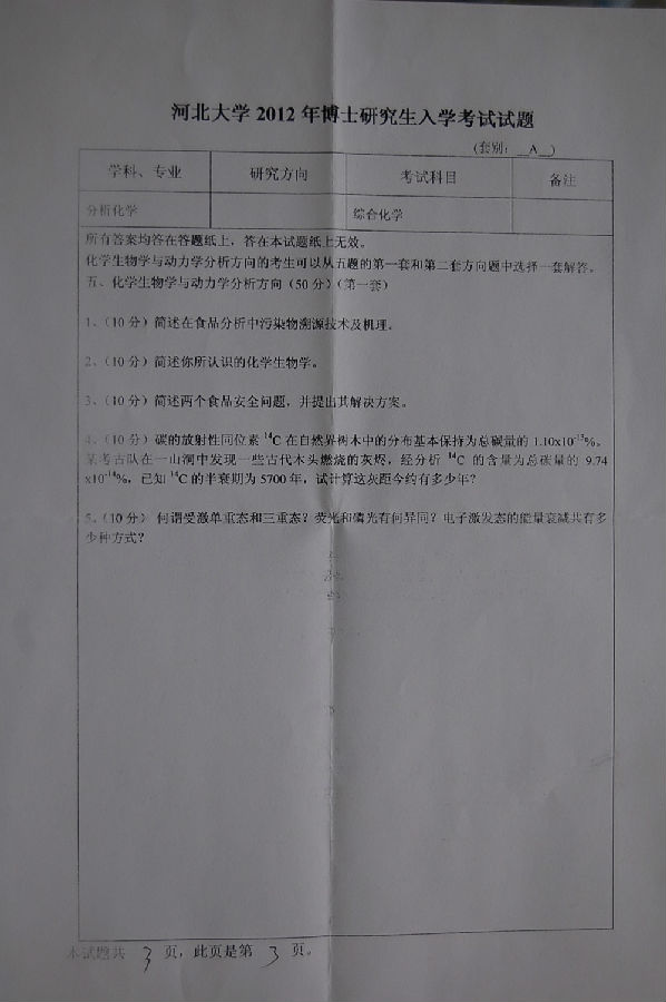 河北大学2012考博分析化学专业真题