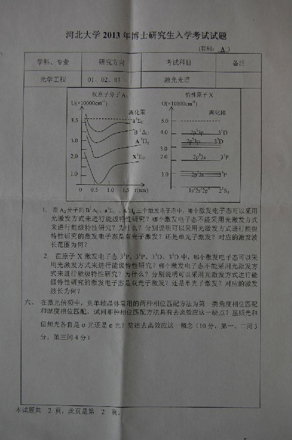 河北大学2013考博真题:激光光谱