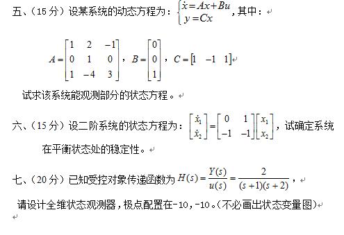 装备指挥技术学院2010年博士研究生招生现代控制理论真题