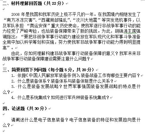 装备指挥技术学院2009年博士研究生招生军事装备学真题