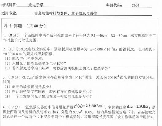 宁波大学2013年光电子学考博真题