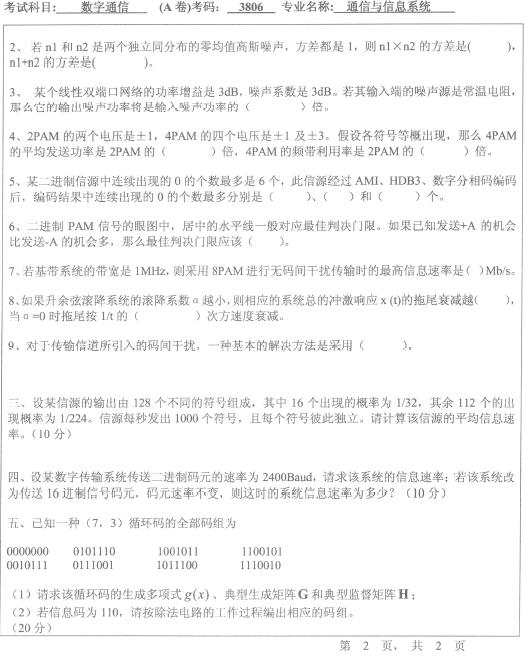 宁波大学考博:2011年数字通信考博真题
