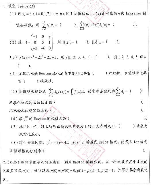 广东工业大学2014年数值分析考博真题