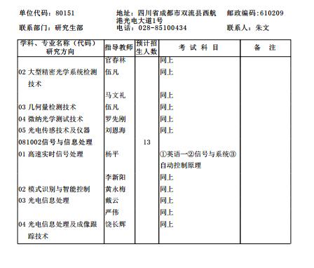 中科院光电技术研究所2016年博士研究生招生专业目录