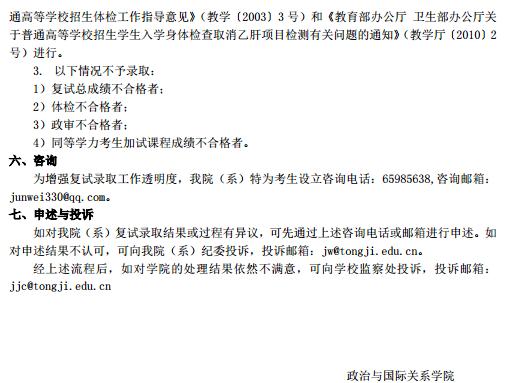 同济大学政治与国际关系学院2016考博复试分数线及复试安排