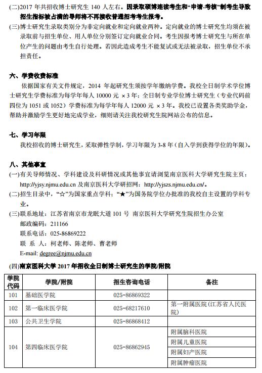 全国各院校2017博士研究生招生简章陆续发布,新东方在线考博频道第一时间为大家跟踪发布相关院校考博招生简章、考博专业目录、考博参考书目、考试大纲。下面是南京医科大学2017年博士研究生招生简章