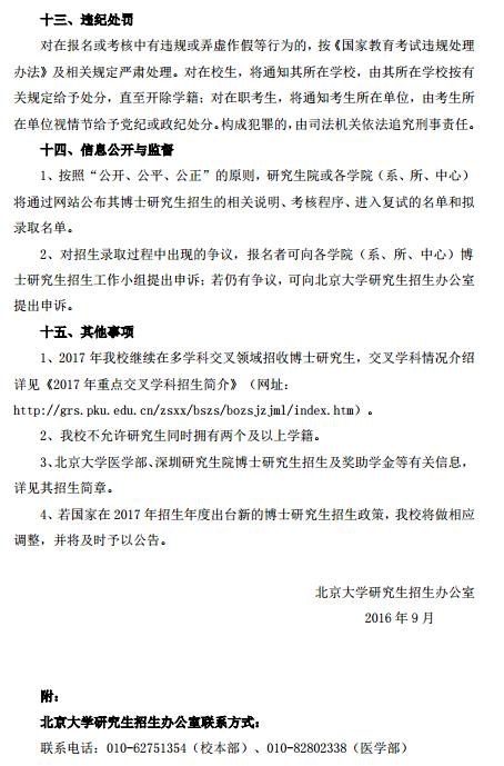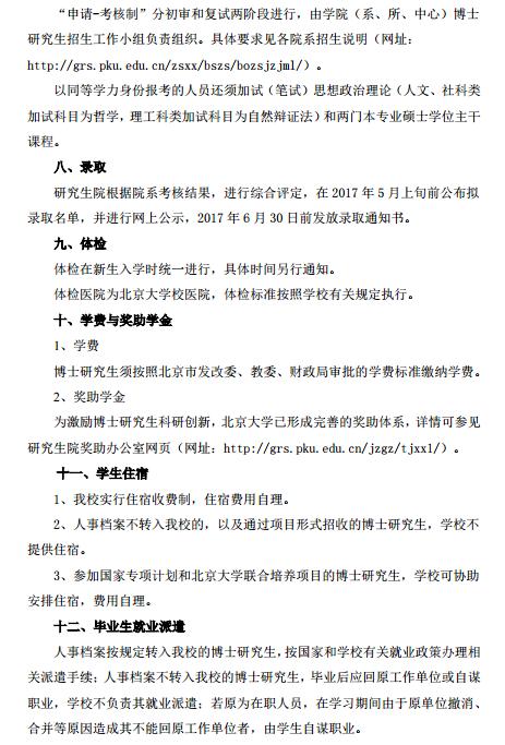 全国各院校2017博士研究生招生简章陆续发布,新东方在线考博频道第一时间为大家跟踪发布相关院校考博招生简章、考博专业目录、考博参考书目、考试大纲。下面是北京大学2017年博士研究生招生简章