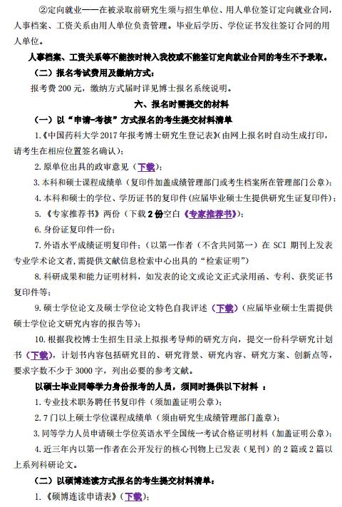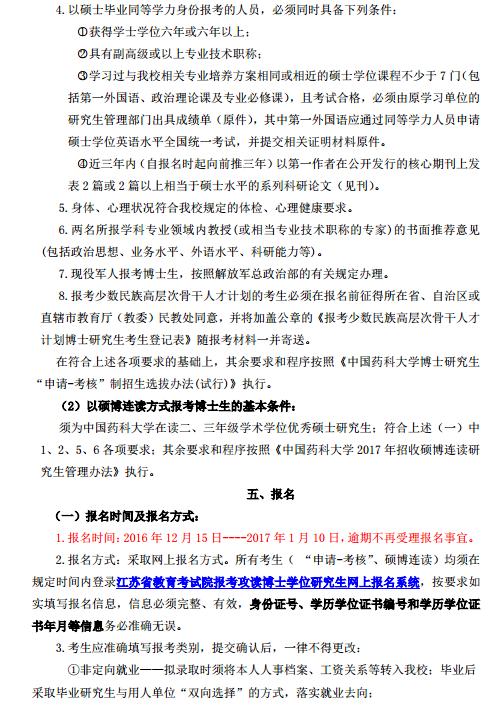 中国药科大学2017年博士研究生招生简章