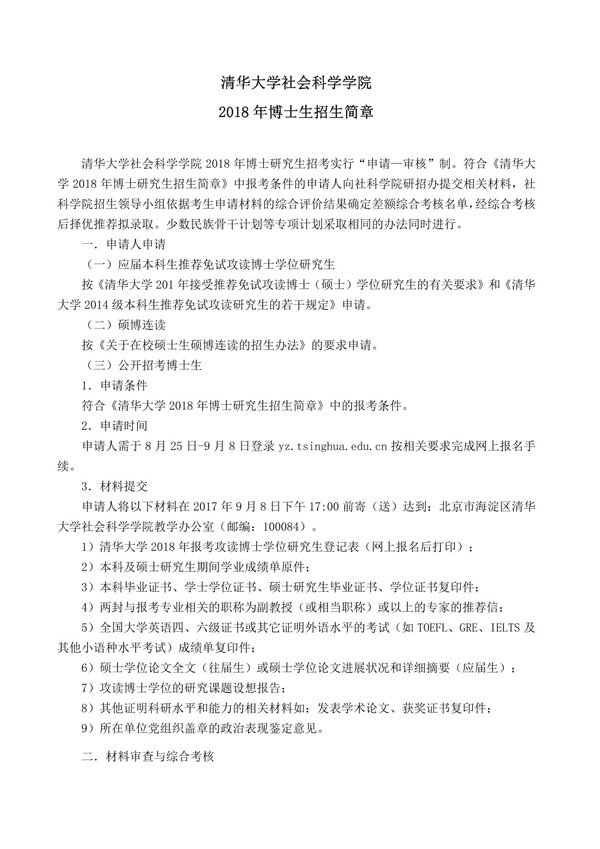 新东方在线考博频道将第一时间发布各招生单位2018年博士研究生招生简章、考博专业目录、考博参考书目、及导师联系方式,请考博考生密切关注。更多考博备考资料及考博真题请收藏新东方在线考博频道,以下是清华大学社会科学学院2018年博士研究生招生简章