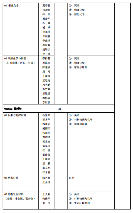 中科院兰州化学物理研究所2018年博士研究生招生专业目录