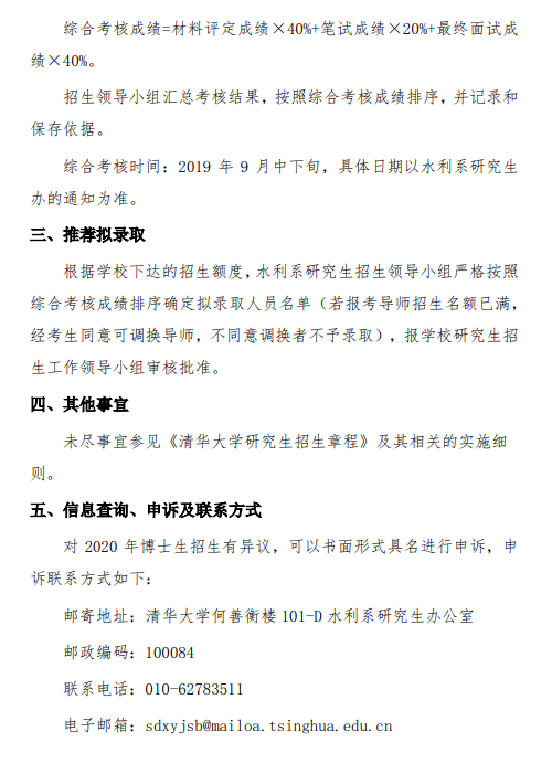 2020年博士研究生招生入学考试工作已经展开,新东方在线考博频道将为广大2020考博考生发布转载各博士招生单位发布的2020年博士研究生招生简章、考博专业目录、考博参考书目、及导师联系方式,请考博考生密切关注新东方在线考博频道。更多考博备考资料及考博真题请收藏新东方在线考博频道,以下是清华大学水利水电工程系2020年博士生招生简章 。