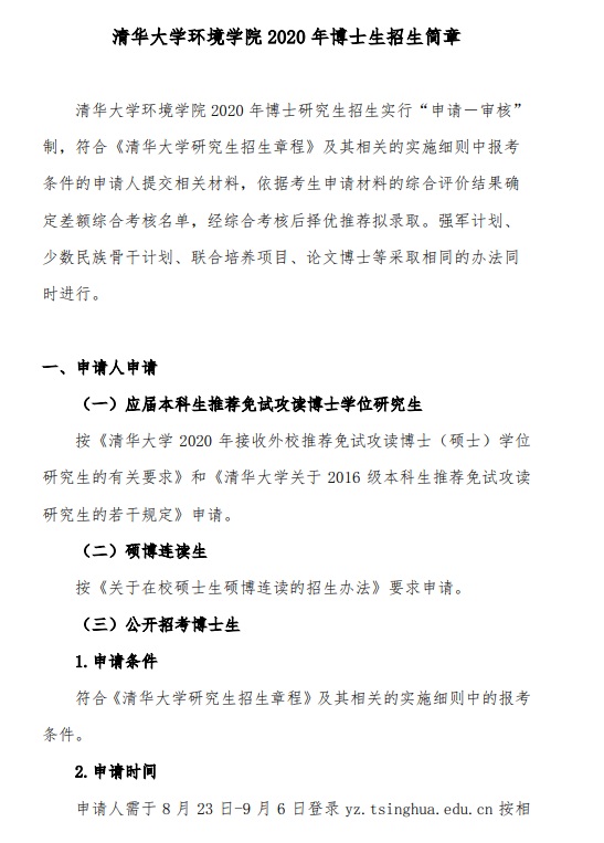 查看详情:【清华大学环境学院2020年博士生招生简章.pdf】