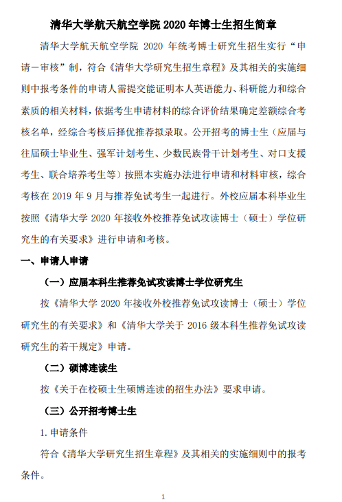 2020年博士研究生招生入学考试工作已经展开,新东方在线考博频道将为广大2020考博考生发布转载各博士招生单位发布的2020年博士研究生招生简章、考博专业目录、考博参考书目、及导师联系方式,请考博考生密切关注新东方在线考博频道。更多考博备考资料及考博真题请收藏新东方在线考博频道,以下是清华大学航天航空学院2020年博士生招生简章 。