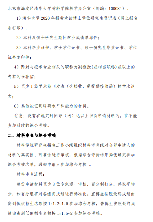 2020年博士研究生招生入学考试工作已经展开,新东方在线考博频道将为广大2020考博考生发布转载各博士招生单位发布的2020年博士研究生招生简章、考博专业目录、考博参考书目、及导师联系方式,请考博考生密切关注新东方在线考博频道。更多考博备考资料及考博真题请收藏新东方在线考博频道,以下是清华大学材料学院2020年博士生招生简章 。