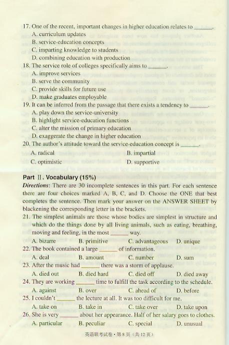 华中农业大学2007年博士研究生招生考博英语真题
