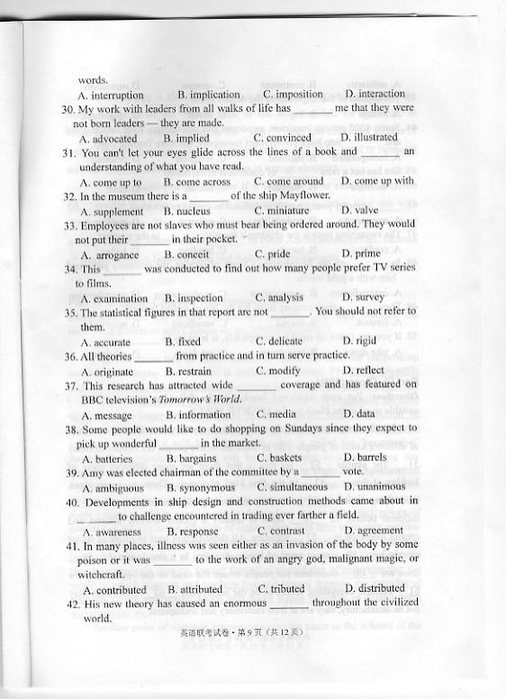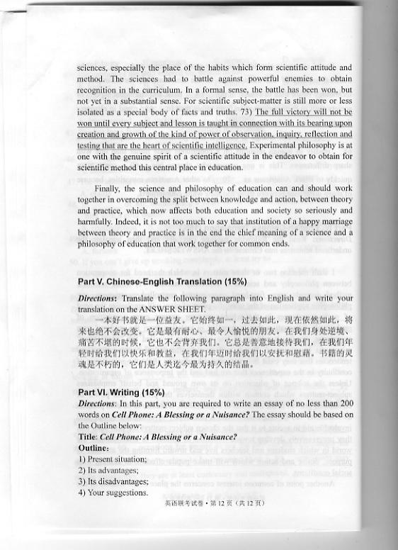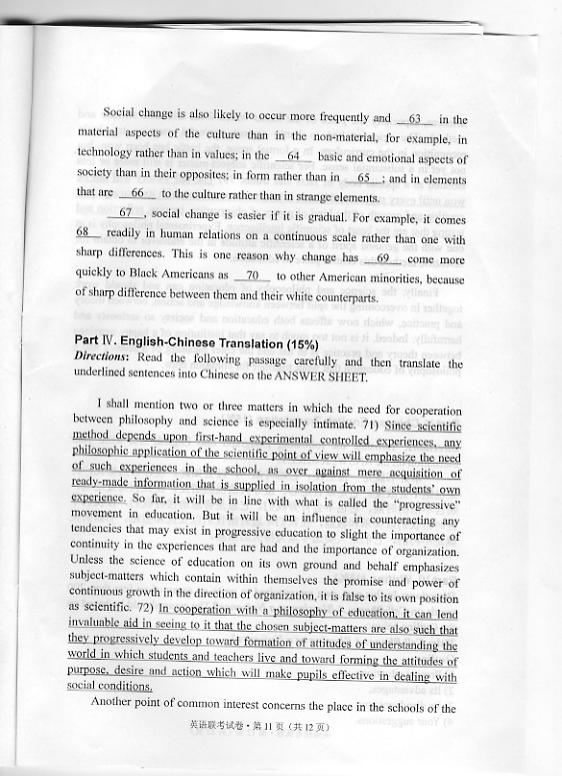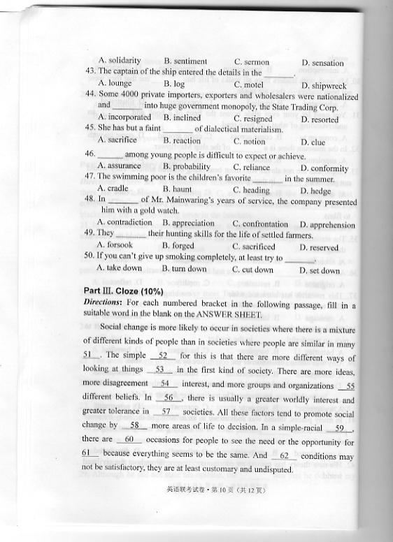 华中农业大学2010年博士研究生招生考博英语真题