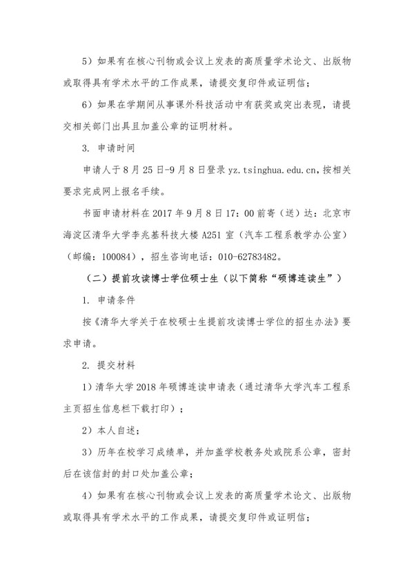 清华大学汽车工程系2018年博士研究生招生简章