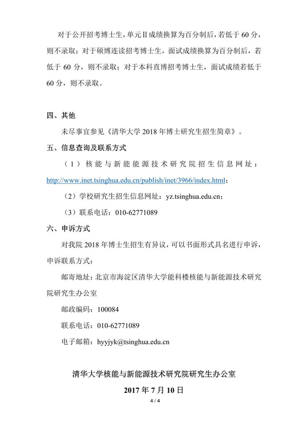 清华大学核能与新能源技术研究院2018年博士研究生招生简章
