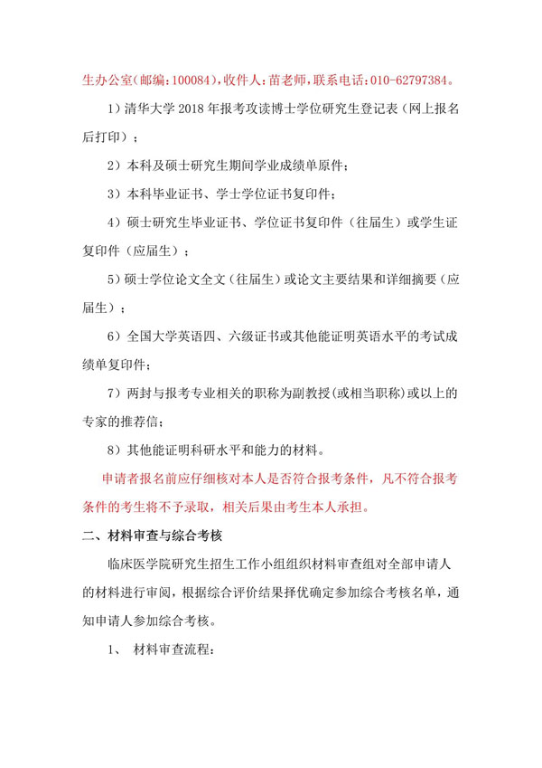 清华大学医学院(临床医学院)2018年博士研究生招生简章