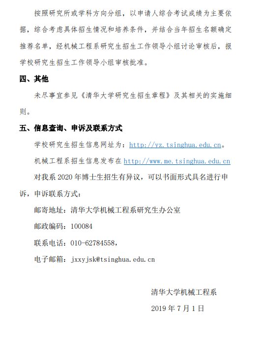 查看详情:【清华大学机械工程系2020年博士生招生简章 .pdf