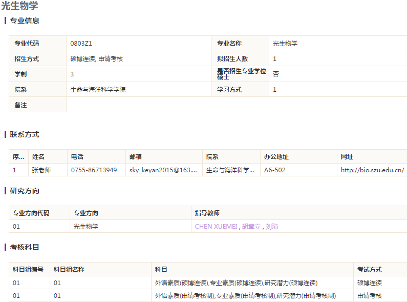 深圳大学2019博士研究生招生光生物学专业目录 2019年博士研究生招生入学考试工作已经展开,新东方在线考博频道将为广大2019考博考生发布转载各博士招生单位发布的2019年博士研究生招生简章...