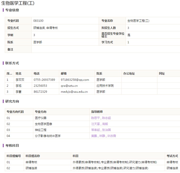 深圳大学2019博士研究生招生生物医学工程(医)专业目录 2019年博士研究生招生入学考试工作已经展开,新东方在线考博频道将为广大2019考博考生发布转载各博士招生单位发布的2019年博士研究生...