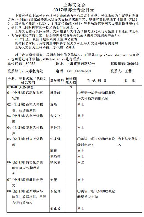 中科院上海天文台2017博士研究生招生专业目录 全国各院校2017博士研究生招生简章陆续发布,新东方在线考博频道第一时间为大家跟踪发布相关院校考博招生简章、考博专业目录、考博参考书...