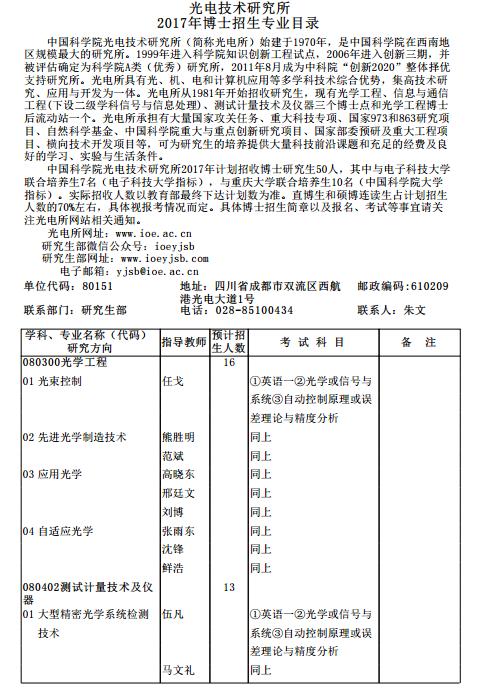 中科院光电技术研究所2017年博士研究生招生简章 全国各院校2017博士研究生招生简章陆续发布,新东方在线考博频道第一时间为大家跟踪发布相关院校考博招生简章、考博专业目录、考博参考...