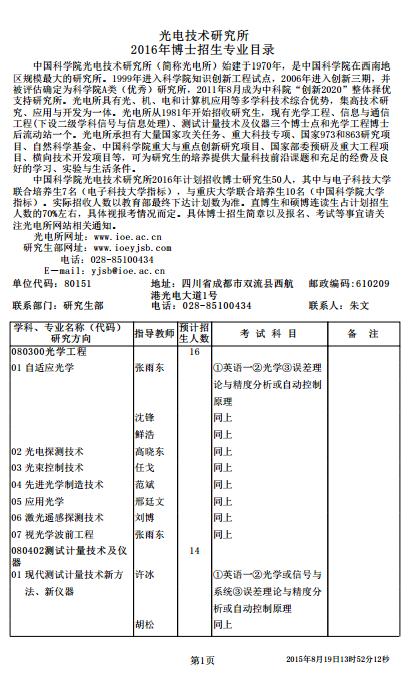 中科院光电技术研究所2016年博士研究生招生简章 研究生院发布的招生专业目录是考博考生们在报考院校的一手资料,通过博士研究生招生专业目录,可以悉知院校博士招生专业以及考博初试科目...