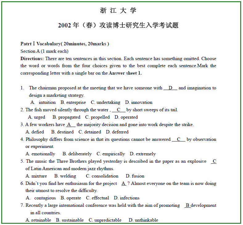 中科院考博英语真题练习资料