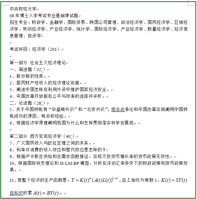 2008年中央财经大学经济学考博真题 研究生院专业课考博真题是考博生们在进行考博复习的时候不可多得的重要资料,新东方在线考博频道整理了2008年中央财经大学经济学考博真题给大家,希...