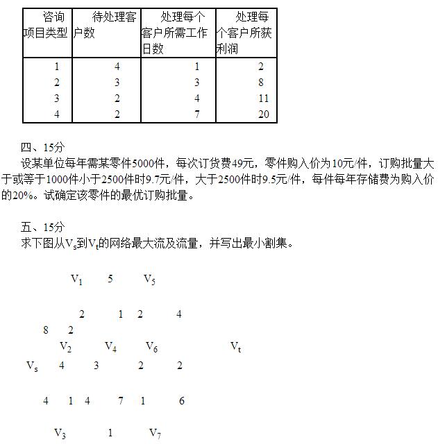 2008年昆明理工大学考博运筹学真题 考试科目代码:2158 考试科目名称 :运筹学 试题适用招生专业 :管理科学与工程、决策科学与决策支持系统、科教管理与知识创新、 系统工程、...