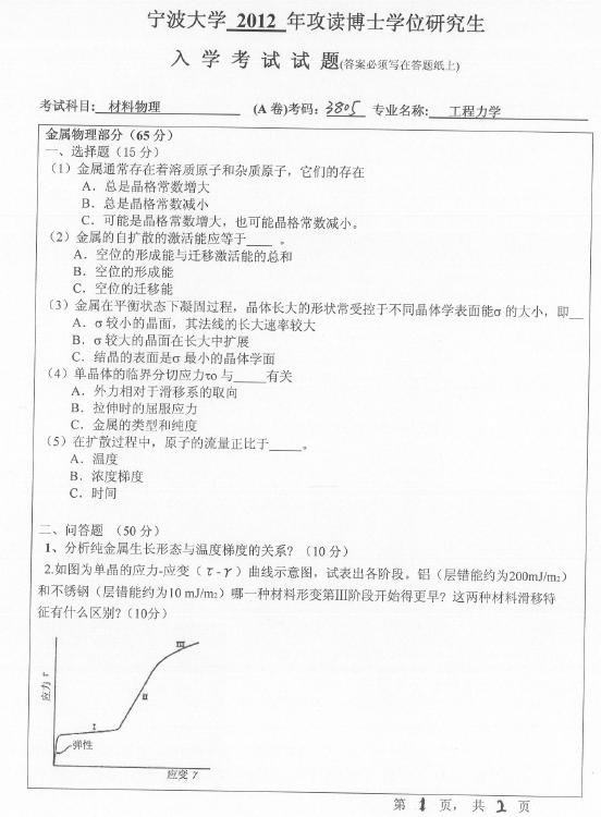 宁波大学2012年材料物理考博真题  考博真题是考博考生复习难得并且十分重要的复习自测资料,新东方在线考博频道为考生们整理了宁波大学2012年材料物理考博真题供考生们参考复习。