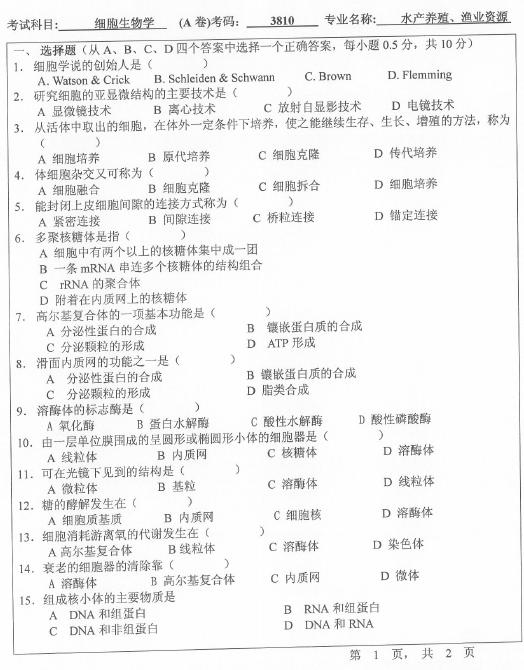 • 宁波大学2012年生物化学与分子生物学考博真题