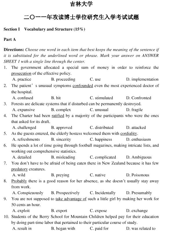 来源 : 新东方在线整理 01月20日 17:24 关键字 : 吉大考博英语真题