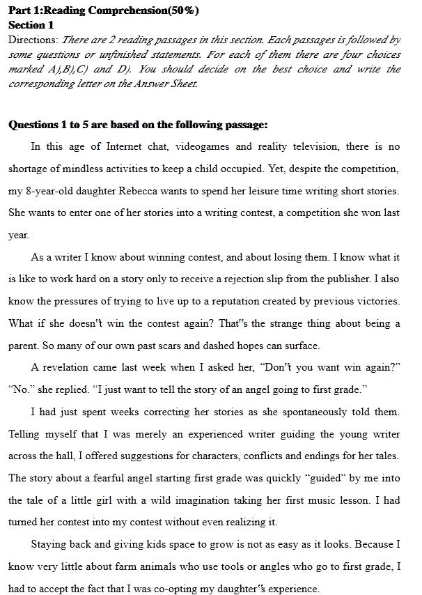 哈工大考博英语真题 General English Admission Test For Non-English Major Ph.D. program(Harbin Institute of Technology)Part I Reading Comp...
