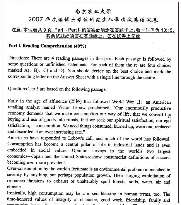 南京航空航天大学2008考博英语真题 考博生们在进行考博英语复习的时候研究生院历年的考博英语真题是不可多得的重要资料,新东方在线考博频道整理了南京航空航天大学2008考博英语真题给大...