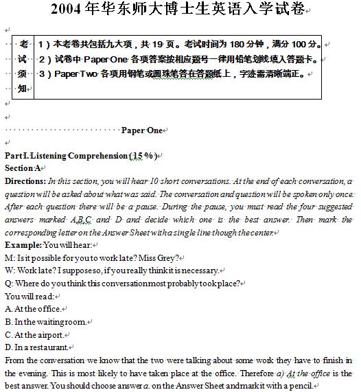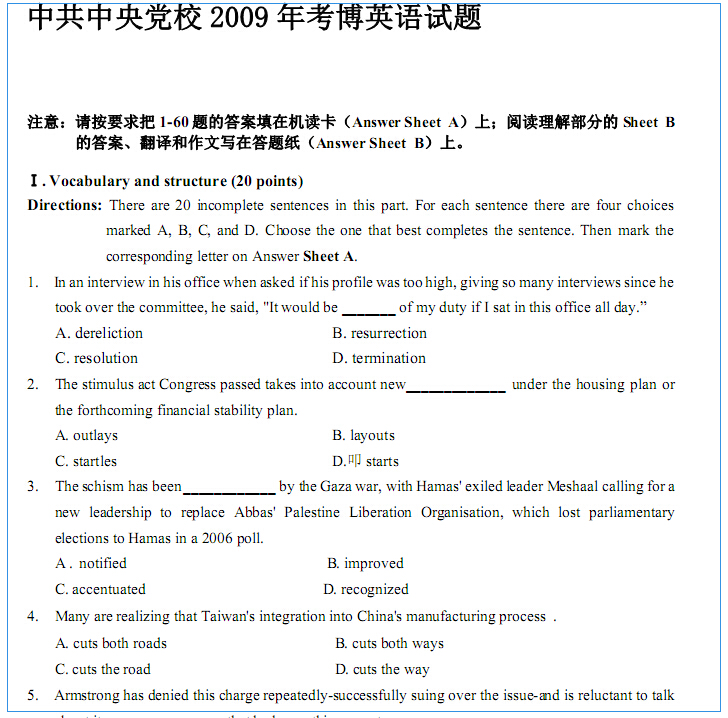 中科院考博英语真题练习资料