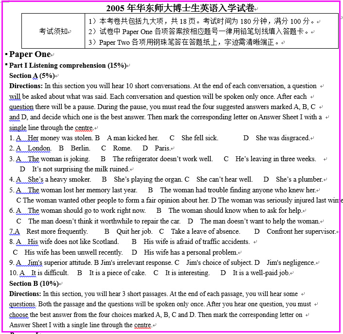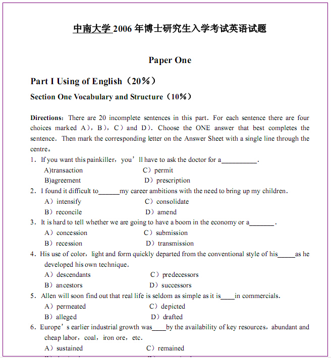 中科院考博英语真题练习资料