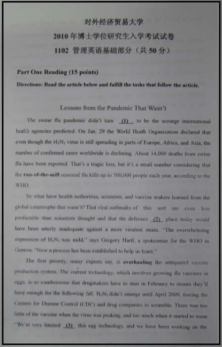 2010年西北农林科技大学考博英语真题 考博英语是每个研究生院招收博士研究生都有的科目,考博生们在进行考博英语复习的时候研究生院历年的考博英语真题是不可多得的重要资料,新东方在...