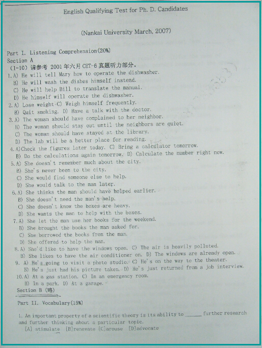 来源 : 网络 12月03日 11:01 关键字 : 南京航空航天大学考博 考博英语真题